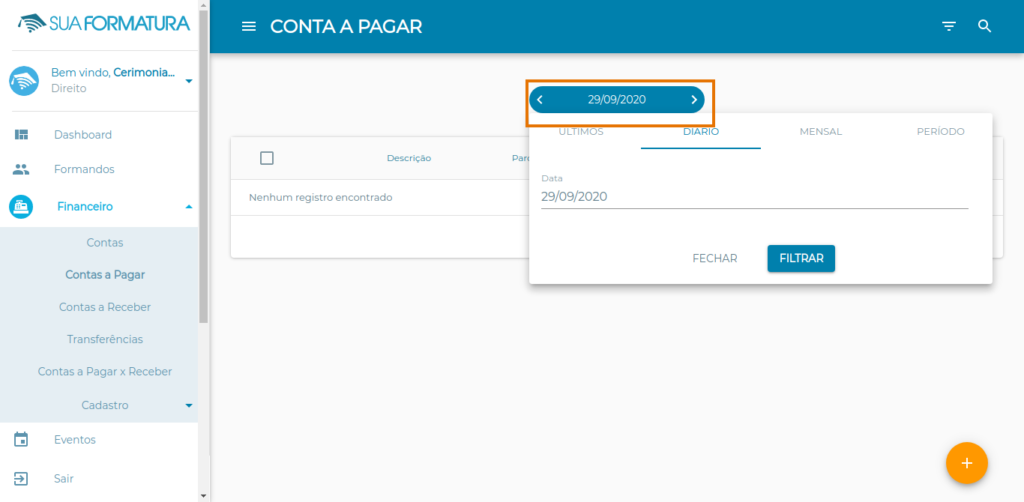 1. Para adicionar uma conta a pagar, clique no botão Financeiro e, em seguida, Contas a pagar;